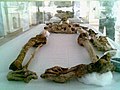 Based on the research conducted, it was determined that this natural mummy was a young boy who was about 16 years old at the time of death. The height of this mummy is 170 to 175 centimeters and there are metal rings on its ears. Its hair is short and brown in color. Interesting objects were also discovered with this mummy. One of these objects is a metal knife with a bone handle that is tied to the mummy's cloth belt in a leather sheath, and other objects include two small, intact clay jars.